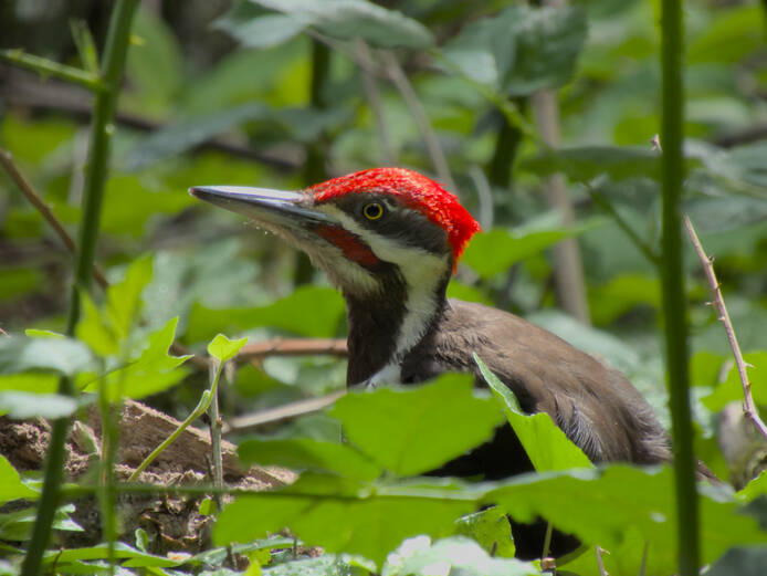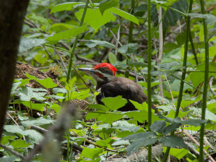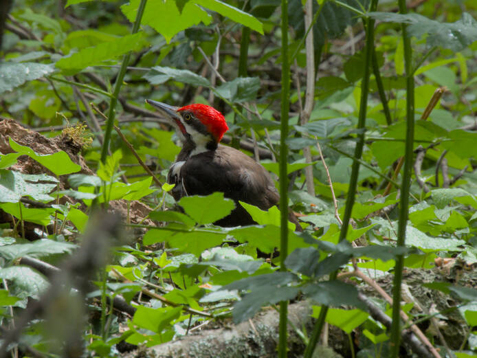Pileated WoodpeckerThis guy was going to town on an old fallen log. There must have been some good eating there. He didn't mind the noise we must have been making.