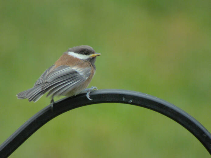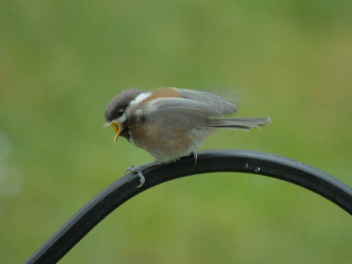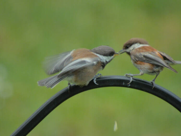 I rarely see more than one Chestnut-backed Chickadee at a time, so I went and got my camera when I saw two. When I zoomed in to take some shots, I noticed one was an immature, asking for food from the other.