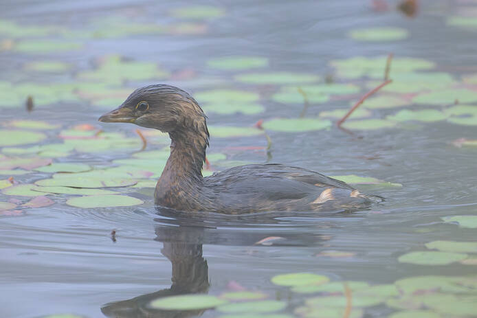 It was a very foggy morning, but I was still able to see a good number of species down at the ponds. I was able to sit behind some bushes for a couple minutes to get some close shots of some Pied-billed Grebes, but it was just too dark to get good shots. The Anna's Hummingbirds that frequent our feeder have become more comfortable with the bird perch I set up on the deck, so perhaps I'll soon get the chance for some good Anna's photos.