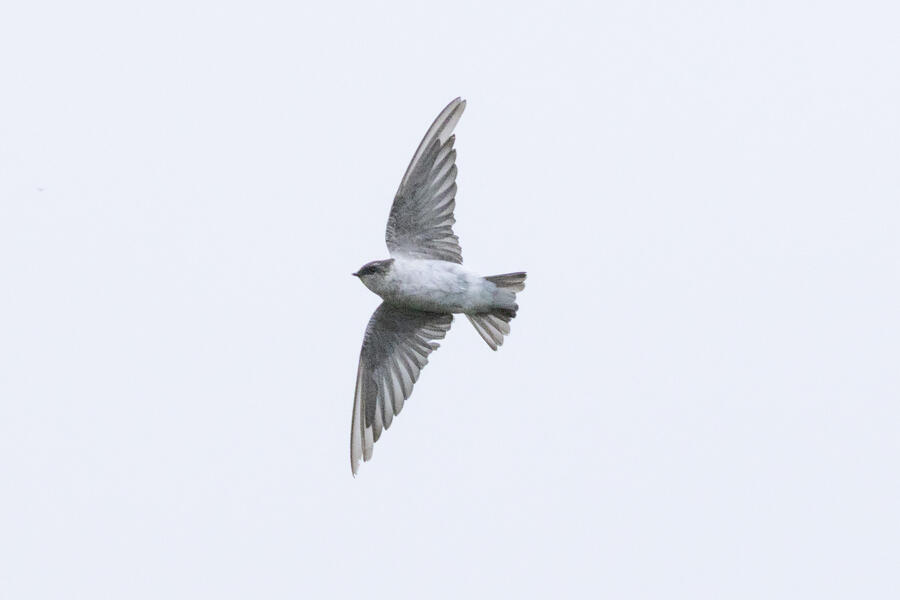 Bank SwallowThe bird was right near the edge of the frame, so I used Photoshop to move it in the frame for a better crop. I was taking photos of any swallows that weren't Barn Swallows, hoping to photograph a Bank Swallow... and the first one happened to be a Bank Swallow!
