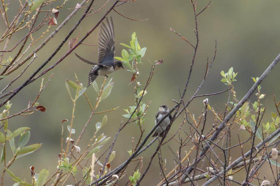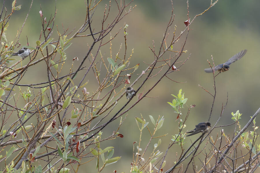 Bank Swallow, Barn SwallowI took a few shots of a Peregrine Falcon floating among a loose flock of feeding swallows, and noticed I got my first ever photos of a Bank Swallow!