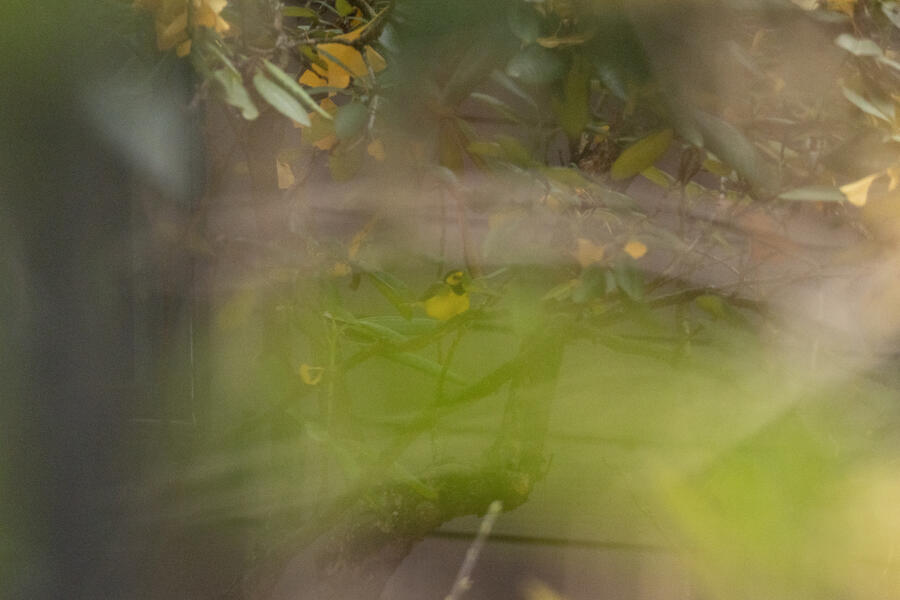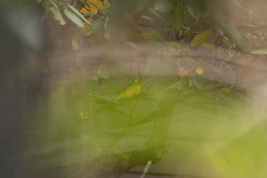 I was able to go and see the Hooded Warbler twice. It was a state-level rarity, and on my first visit some birders there had already found it, which made getting a glimpse easier. I only got a brief look with binoculars, so I returned a few days later and was able to find it on my own and get some challenging photos. This bird was staying close to the ground, and in a residential area with dense vegetation and fenced off properties, so it was hard to actually see after locating it by ear.