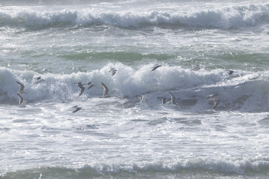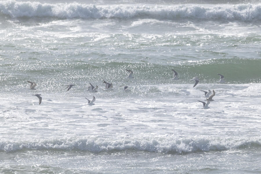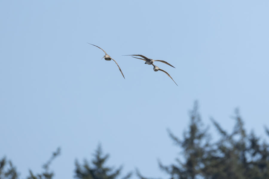 Short-billed GullI had looked ahead of time and knew there had been Short-billed Gulls seen often at this part of the Oregon coast. As I was heading toward the car I saw a group of gulls going by and took some photos. Sure enough, they were Short-billed Gulls with large white mirror spots on outer primaries, very small unmarked bills, and dark eyes. Those field marks all rule out Ring-billed, which is probably the most similar species they could have been. I don't see Short-billed that often so I'm happy to have taken these photos.