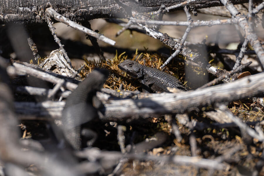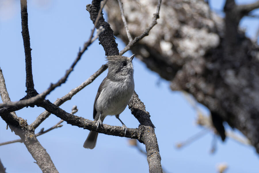 Toward the end of March we made short trips to the north and south ends of Oregon. On our second trip to the south, I got a chance to go out and find my lifer Oak Titmouse, which I'm happy to have found in Oregon (they're much more widespread in California). It wasn't easy to find this bird — I spent a while out wandering around, hearing it occasionally, and had given up and was walking to the car when I finally spotted a pair. I followed it from tree to tree for a few minutes and got some photos, so I feel super fortunate for that.
