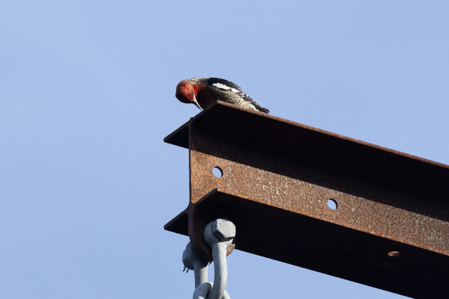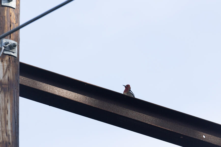 Red-breasted SapsuckerThis likely male Sapsucker was drumming on the metal beam on the power poles.